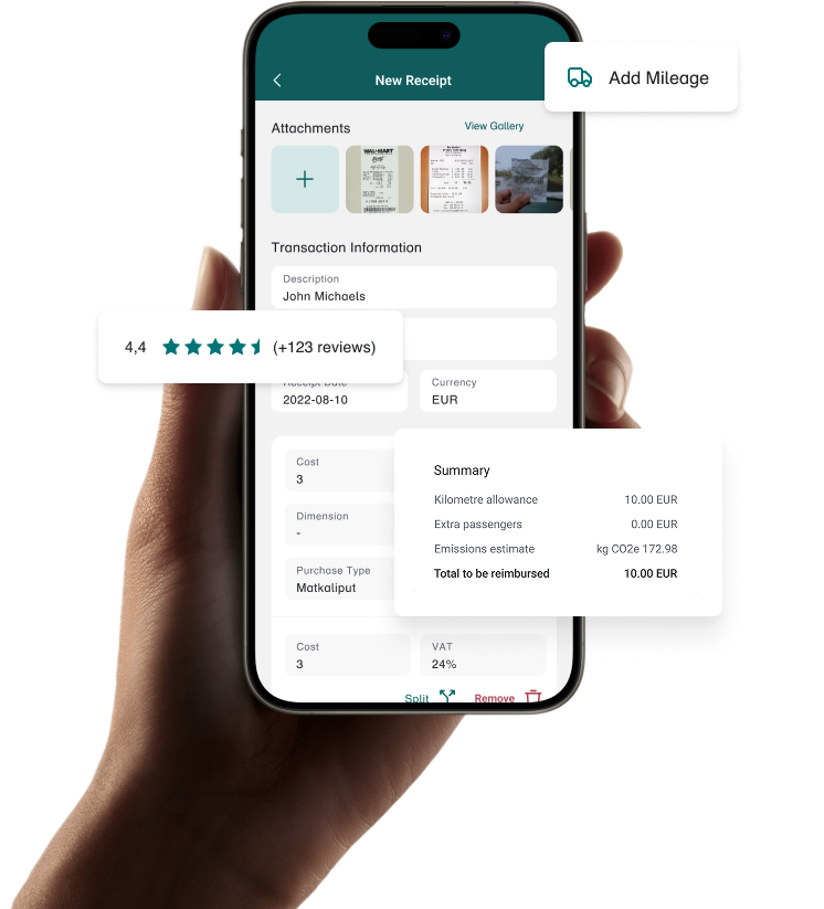 Ditt team kan enkelt skicka in kvitton, milersättningar och traktamenten, och du kan godkänna dem med ett klick. Vi räknar ut ersättningarna baserat på lokala riktlinjer och sköter automatiskt ersättningarnas bokföring och rapportering till myndigheter.